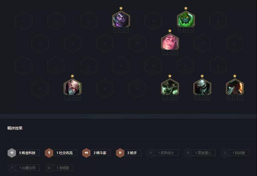 如果走炼金枪也可5炼金+2枪+塔里克过渡7人口,但一定需要前排坦度高,否则前排抗不住后排厄加特就打不出输出。