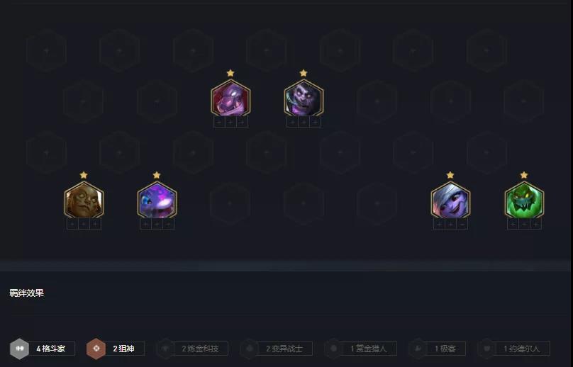 2阶段:正常升级人口2-1升4,2-5升级5人口,尽量走连胜,不要卖血。如果斗士比较多,直接斗士打工搭配枪手、狙神、发明家都可,比较建议斗士3发明家,多召唤一个虫子,还能利用极客羁绊散件变成品,打工强度颇高,很容易连胜。防装就给俄洛依,输出装给特朗德尔打工就好,这俩棋子后期是一定要换下来的(有格斗心/魂/转装备不要给俄洛依,格斗枪走6斗强度也非常高),装备一定不要放在备选席,这是对装备的侮辱,也是很多朋友前中期大掉血,后期没容错的原因。