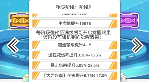 6. 核芯阶段6,同上推荐暴击伤害提升/【大力轰拳】伤害提高,进一步提高输出上限,尽可能做到一拳打出倒一人,然后乘胜追击连续出拳清场。