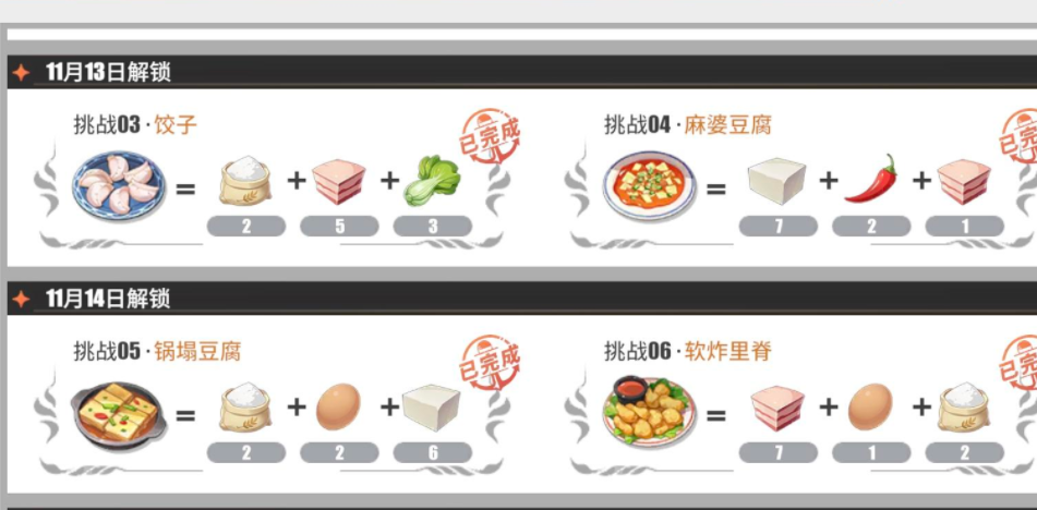 2、建议在饱腹状态做此活动,防止越做越饿。这次活动可以通过各种玩法获得食材。15号的菜谱为水煮肉片和鱼香肉丝,小编会第一时间为大家更新,大家可以继续关注本站