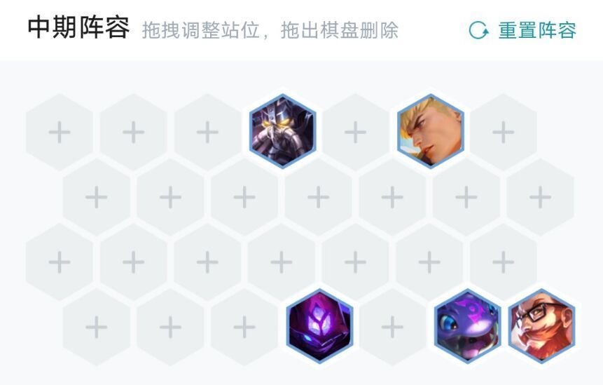 中期则用两圣盾、两枪手、三变异、两战斗学院过度,羁绊拉满,打不过也不会掉太多血,如果连败的话则在6人口大D一波找到大虫子跟斗士前排以后上7,上7将5变异凑齐大虫子、玛尔扎哈两星即可锁血上8。