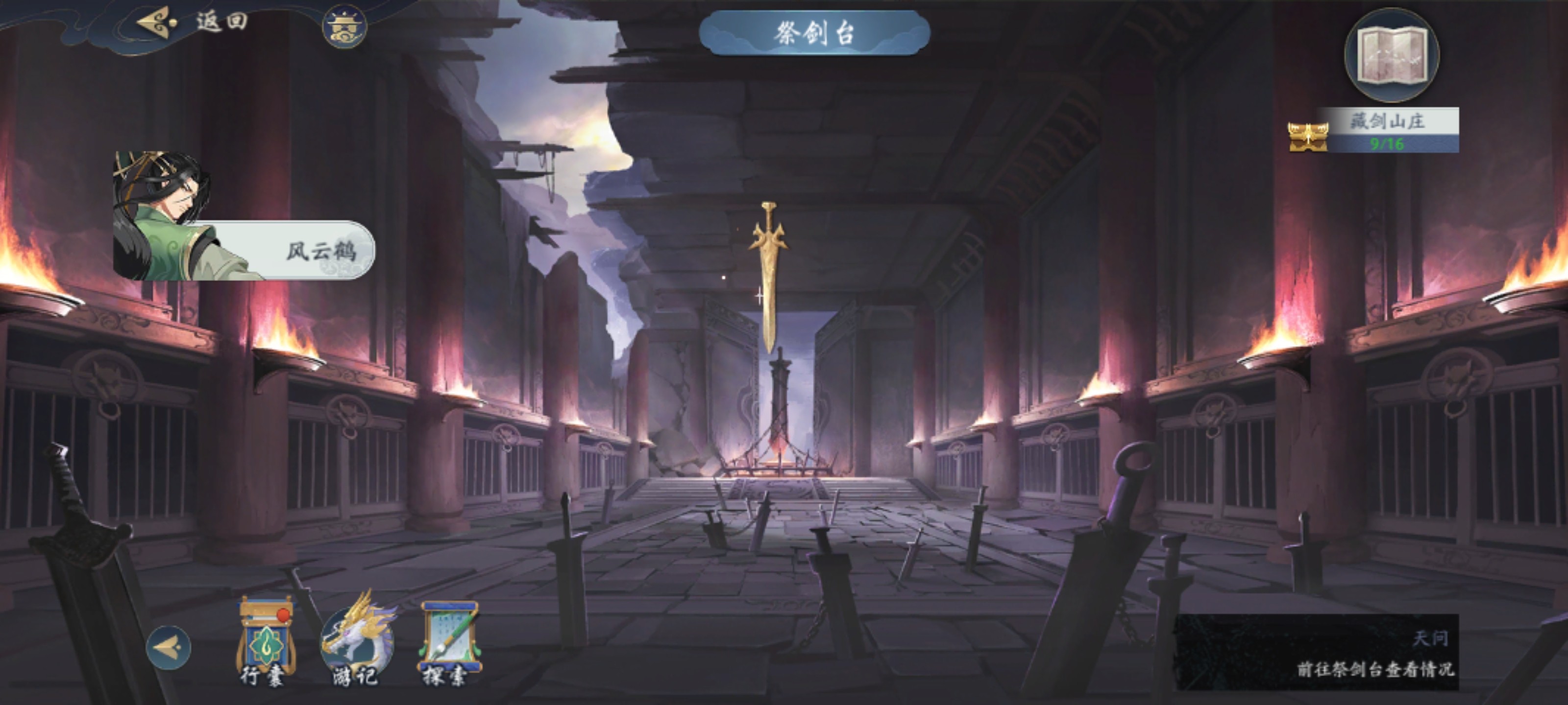 5、通过剑冢前往祭剑台寻找风长老,硬闯不成回正殿找姜凡