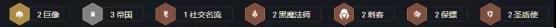 羁绊组成:2巨像&3帝国&1社交名流&2黑魔法师&2刺客&2保镖&2圣盾使