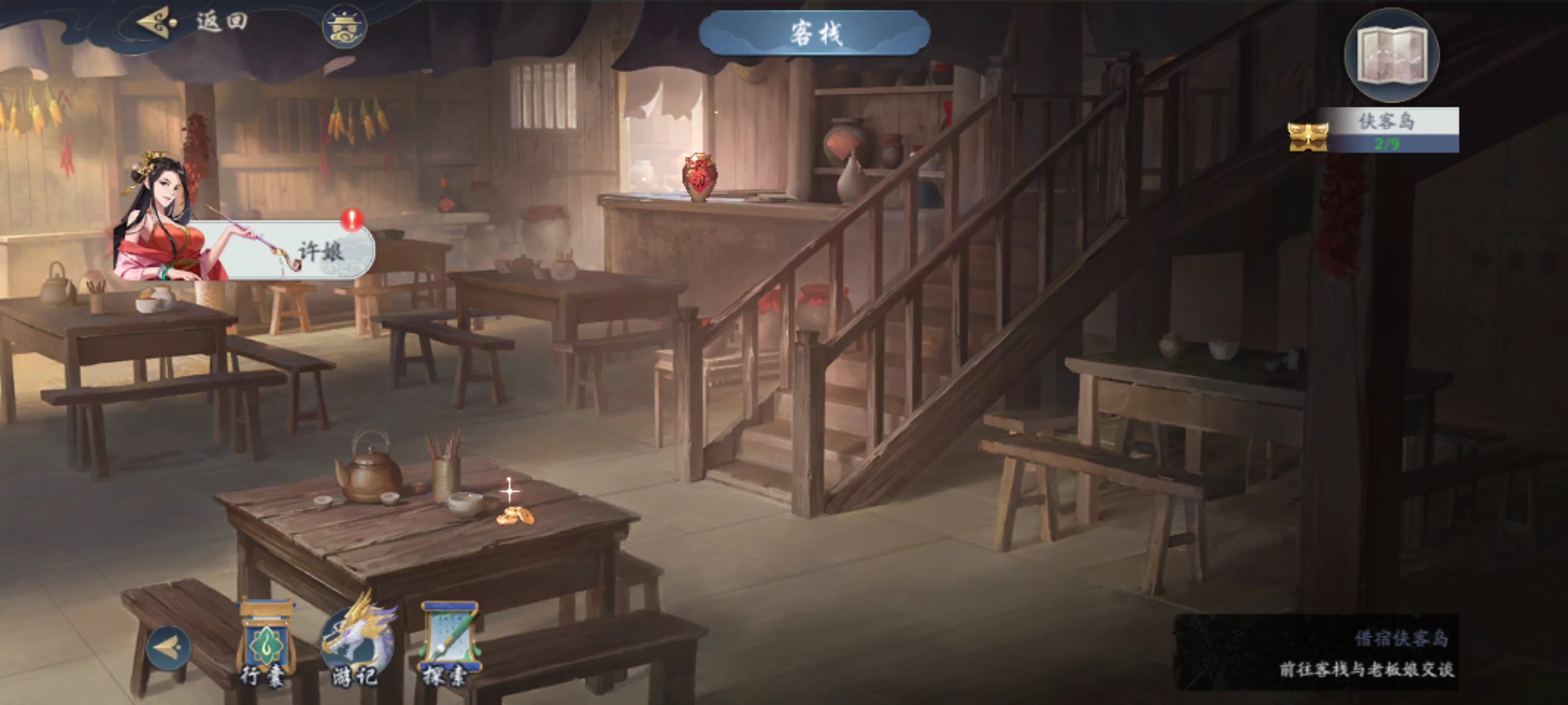 1、先找移花宫接任务开启借宿任务,进入客栈,和许娘对话开启客栈房间