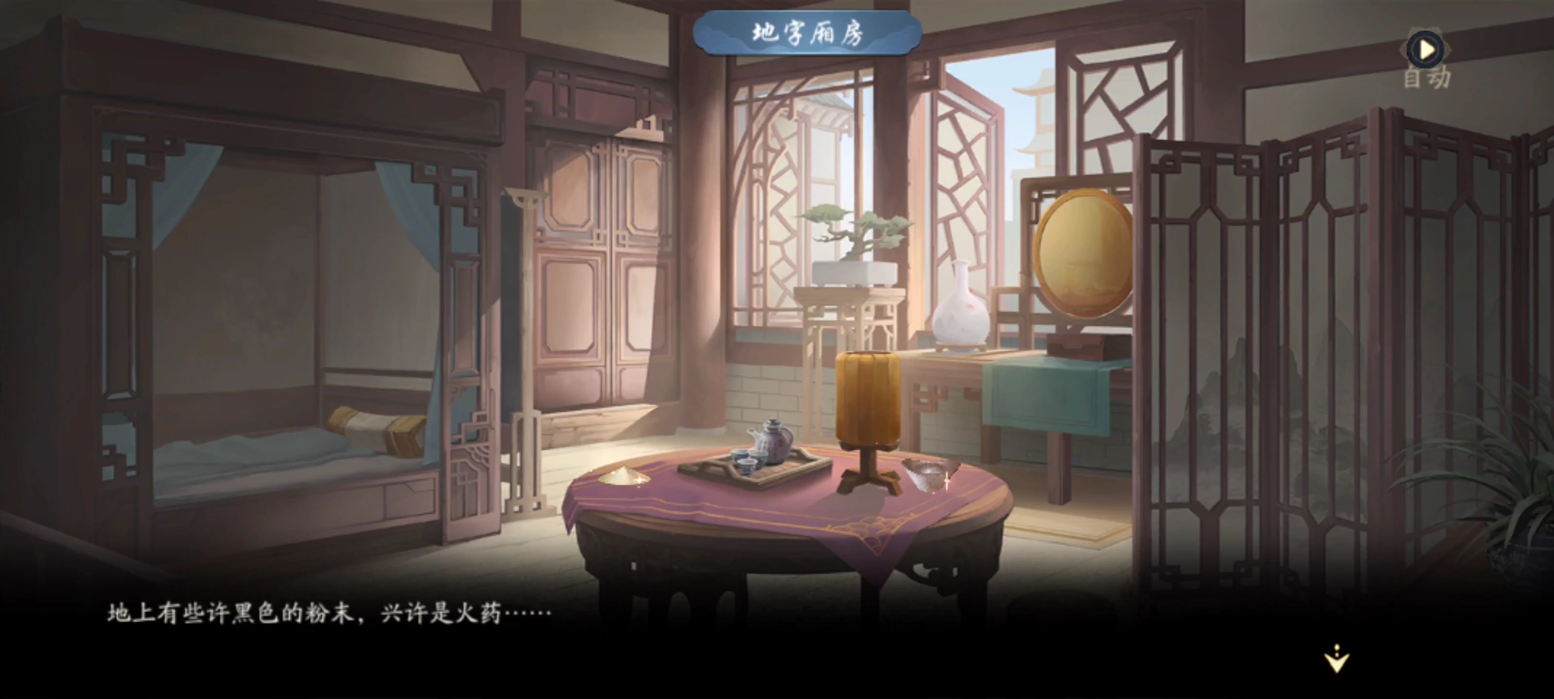 4、回客栈继续睡觉,听见扶桑人出门,开启客栈房间,去扶桑人的地字房,在桌子上可发现火药以及银两