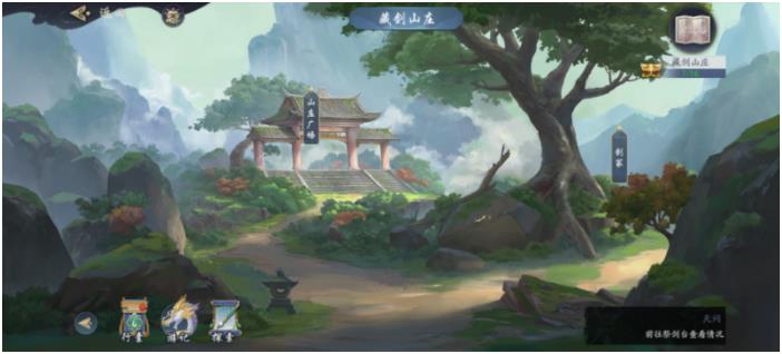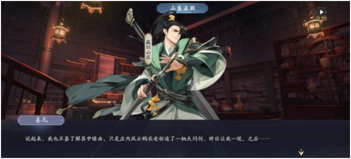 1、与藏剑弟子对话开启,进入山庄广场找藏剑长老对话开启庄主阁,山庄正殿等场景