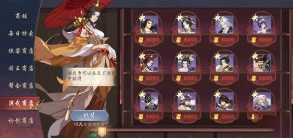 4、参加闯王宝藏、论剑山庄,获得专属货币后,在兑换商店兑换侠客或者侠客碎片,集齐一定数量的侠客碎片可以合成侠客。