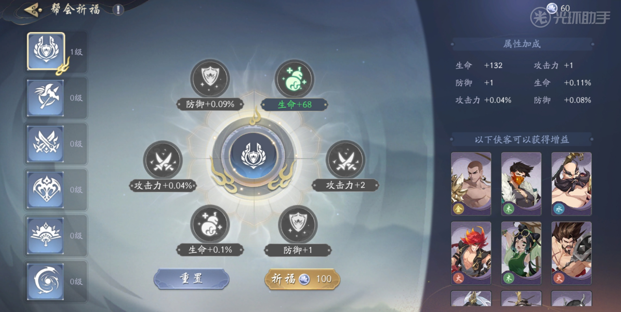街机cn 来源:厂商 发表于:2021-11-20武林闲侠帮会祈福怎么加?祈福是帮会的功能之一,可以为角色带来属性加成,大家可以根据自己的角色情况进行加点。以下是详细的武林闲侠帮会祈福加点攻略,希望对大家有所帮助。