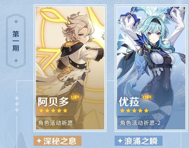 原神2.3版本将于11月24日上线,首先将会复刻阿贝多和优菈两位五星角色,需要注意的是,第一期是同时开放两位复刻角色的UP卡池,两个卡池公用保底。持续的时间是,2021年11月24日-12月14日。