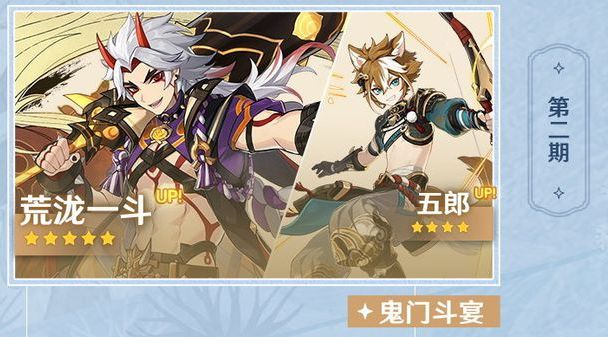 当第一期的UP卡池结束后,将开放第二期UP卡池,第二期的UP卡池开放一位五星角色荒泷一斗,和四星角色五郎,两位都是岩系角色,荒泷一斗三岩阵容的AOE伤害很高,一位拿大剑,一位拿弓。持续的时间是,2021年12月15日-2022年1月4日。玩家们如果运气好的话还可以同时拿到这两个角色。