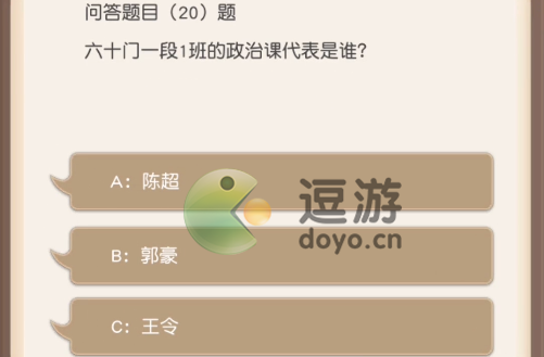 2.问题:六十门一段1班政治课代表是谁?