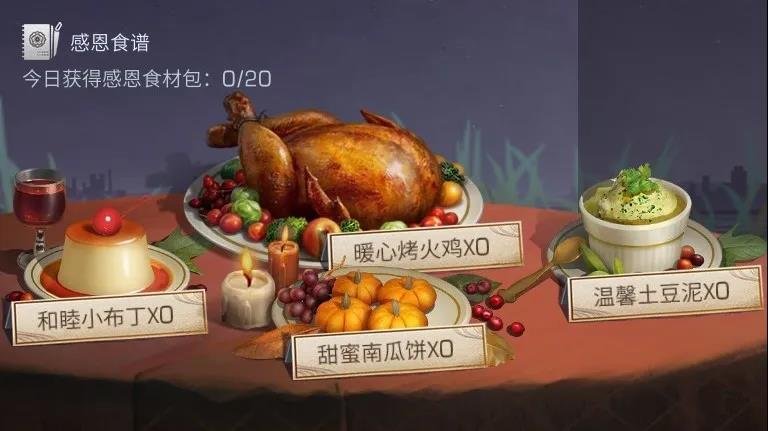 幸存者在采集、打怪和钓鱼时,有机会获得感恩节食材礼包(每日最多获得20感恩节食材礼包)