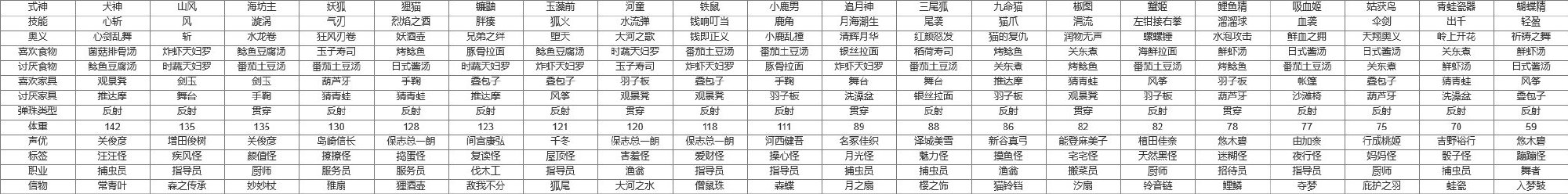 参考答案以式神体重排序,建议家主在参加比赛前,多看几遍式神的答案,不要边答题边找答案。