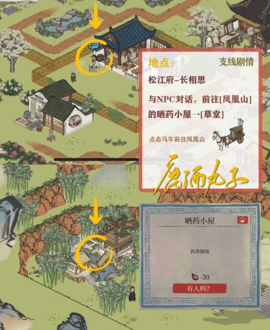 另外,支线剧情中,可点击马车前往凤凰山的晒药小屋-草堂。