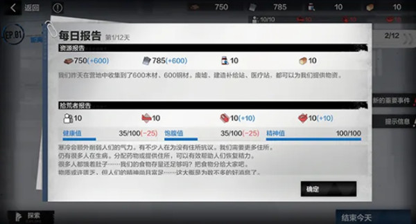 精神值为0,或营地中所有拾荒者死亡时,本关卡将以失败结束