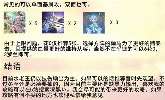 限定up池冬至(强烈建议前期的资源去抽冬至的up池,非氪佬抽到一只即可,非必选)。水队核心,输出爆炸。