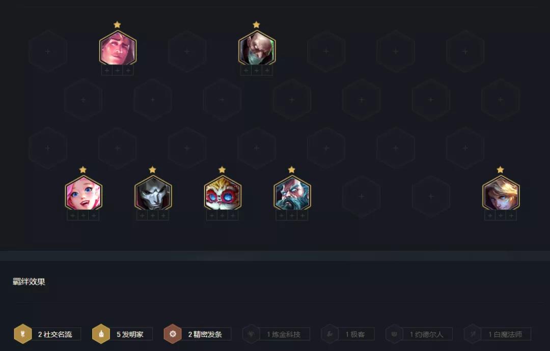 触发羁绊:5/7发明家 2名流 2白魔 2学者 2精密
