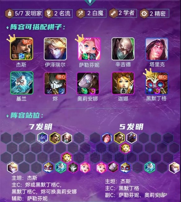 触发羁绊:5/7发明家 2名流 2白魔 2学者 2精密