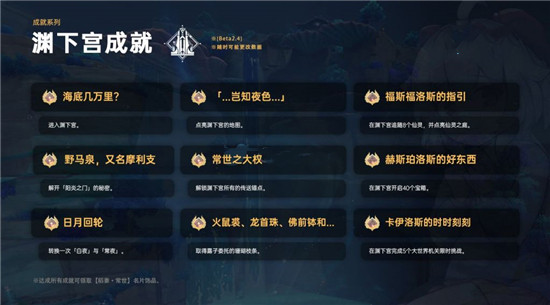 街机cn 来源:厂商 发表于:2021-11-28原神2.4版本里面将会开启新的常驻地图--渊下宫,在这个新地图上线之后,依旧会有很多的成就会更新,今天小编为大家带来的渊下宫地图里面的新增加成就和完成方法,感兴趣的玩家们快来一起看看吧。