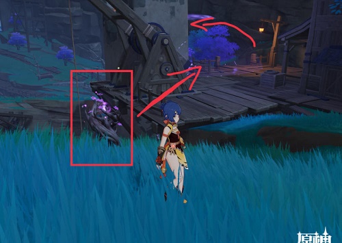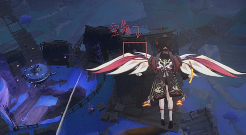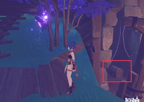 雷种子在这,神瞳没拿的话别着急,先去拿宝箱。绕半圈烟囱,如果以这个角度为正面,那就去它背后。它的左侧面有个豁口,待会拿神瞳从这爬进去。(直线爬上去也行,无所谓。)