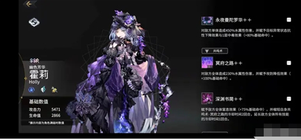 最后就是这个探索送的霍利了,看她的技能组是不是发现她和主角的影隼系统很相似...没错,他俩就是这么个有你没我的状态,不是因为他俩技能组像,而是这游戏的降防机制问题