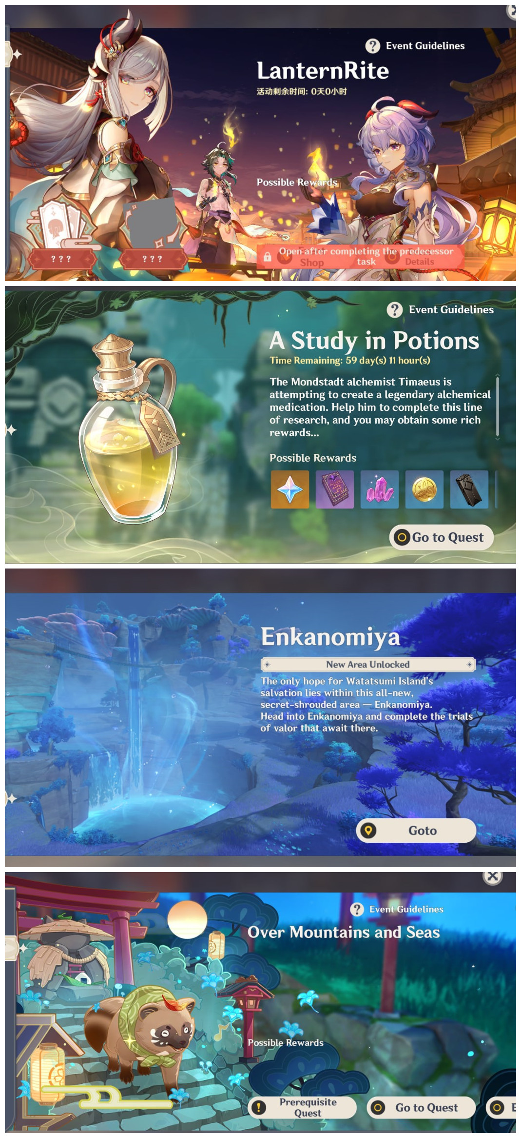 街机cn 来源:厂商 发表于:2021-11-29原神2.3版本开启没多久,2.4版本已经被爆料了很多内容了,很多小伙伴都想要知道都是些什么,今天带来了一篇详细的爆料内容汇总,想提前知道2.4版本的内容的话就一起看下《原神》2.4爆料内容汇总分享吧。