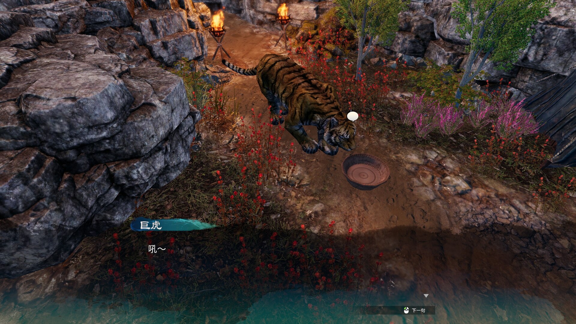 师兄穆浩轩给温翠书三日调查掌门死因,前往剑坟,在周围收集信息。根据提示点燃蜡烛,“仁者右也,道者左也,剑者中也”即点燃蜡烛的顺序就是口诀的顺序: