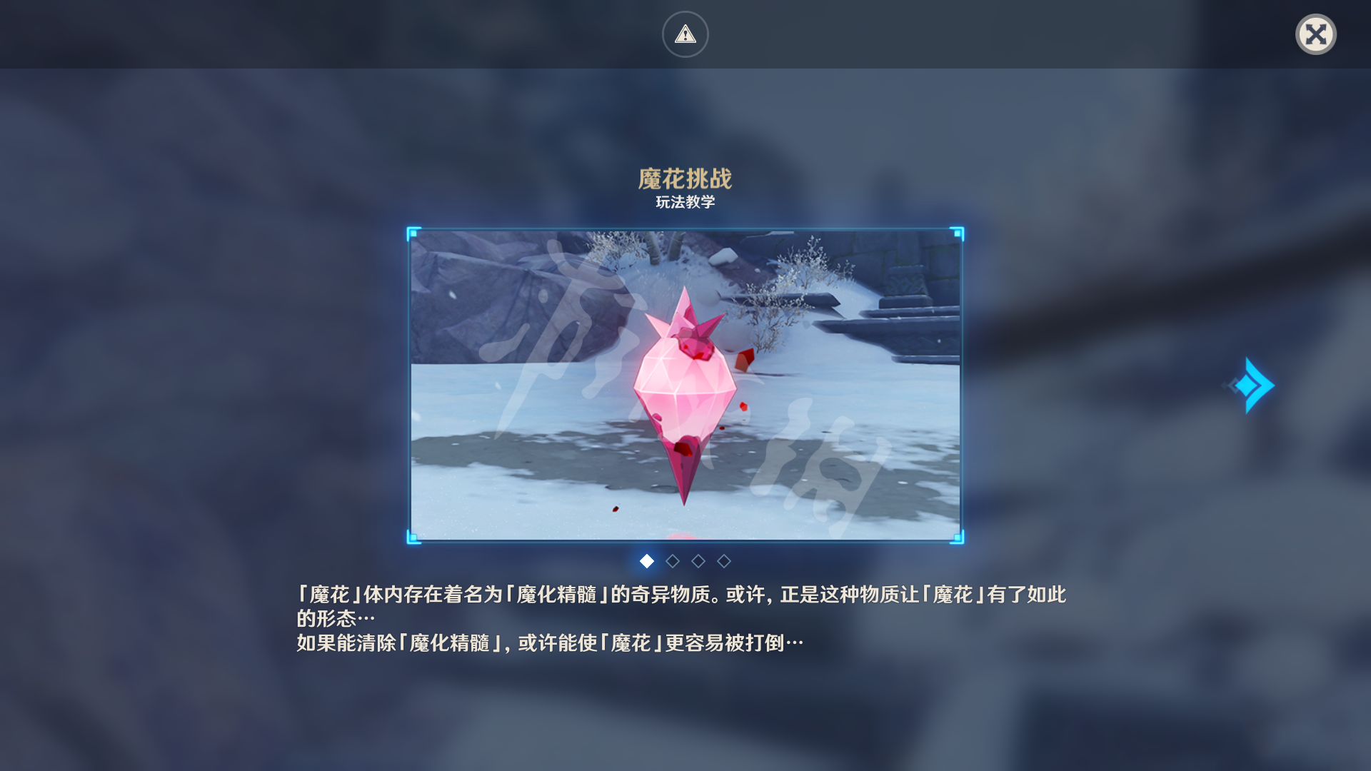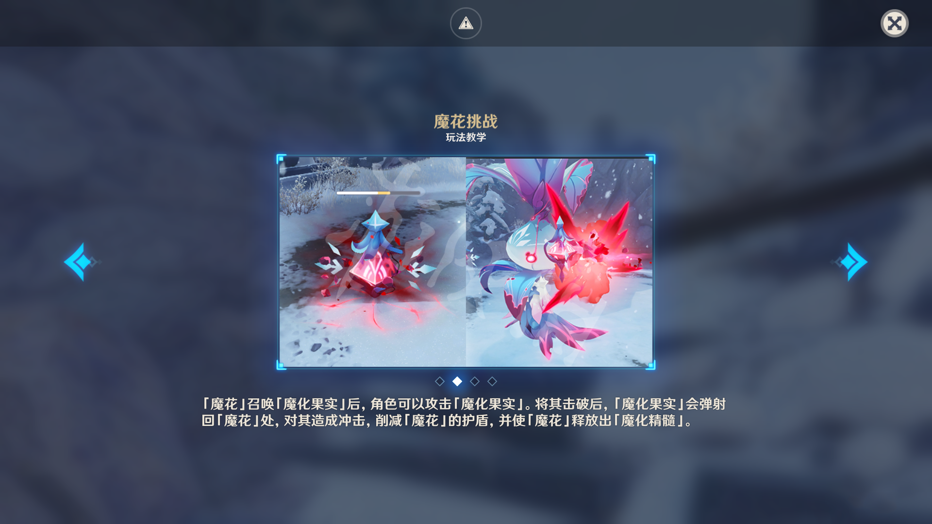 「魔花」会召唤「魔化果实」,角色可以攻击「魔化果实」。将其击破后,「魔化果实」会弹射回「魔花」处,对其造成冲击,削减「魔花」的护盾,并使「魔花」释放出「魔化精髓」。