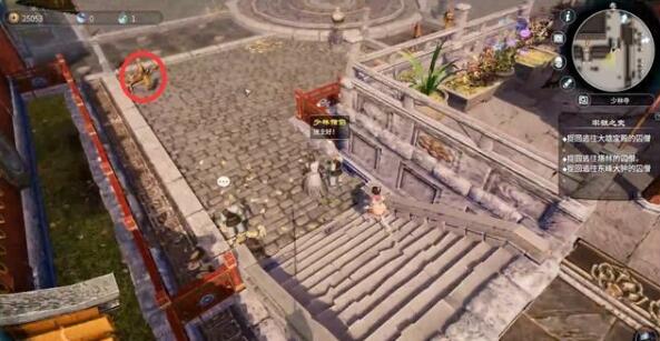 需要抓住3名囚僧,第一个在大雄宝殿附近,左边走廊,靠近之后他会逃跑。