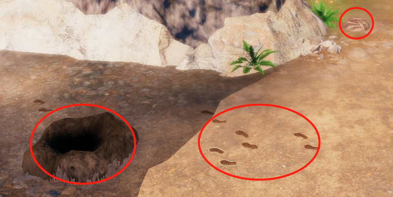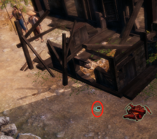 抵达任务感叹号处,走到海寇面前触发剧情,检查兽爪印,一路跟随来到洞穴,拾取粪便和狼尸,回去找火堆→生肉并点燃,取得仓库的木头。