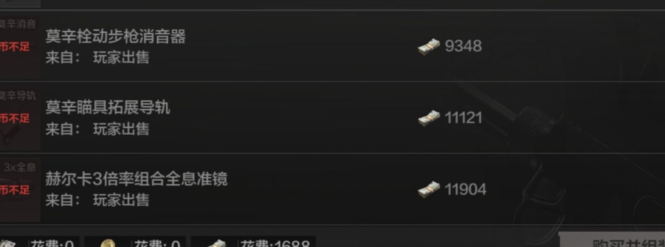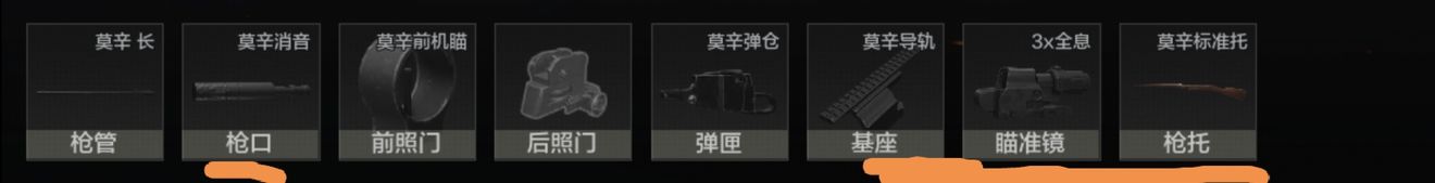 身上有莫辛纳这把枪,那么我们只需要买枪口、基座还有瞄准镜的武器配件就行了。