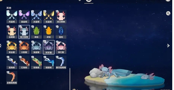 四方八方之网,经过了阴阳术式的改造,可以捕捉并拘出大世界中的小动物的神形,并且以「四方八方之网」为媒介,再次化出小动物的形体,化出形体的小动物可以放置在「尘歌壶」内。可以通过图鉴/生物志/野生生物查看可捕捉的小动物,有网状标记的就是,目前共有42种,就连晶蝶都能抓,已经可以预感到整活大师在山洞里用晶蝶模仿星空了。