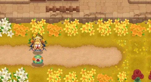 3、难点二:右边的小迷宫,这里有个小技巧就是在迷宫挡路的花,实际上是被吸收之后,羊驼没有吐掉的话是不会再生成的,可以利用这个走很多捷径