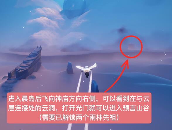 1、前往晨岛右侧的云洞,打开光门即可进入预言山谷。