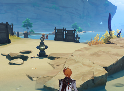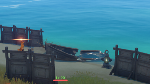 5.抓完之后果断跑路拜拜 去最右侧海边来到山腰处如图所示
