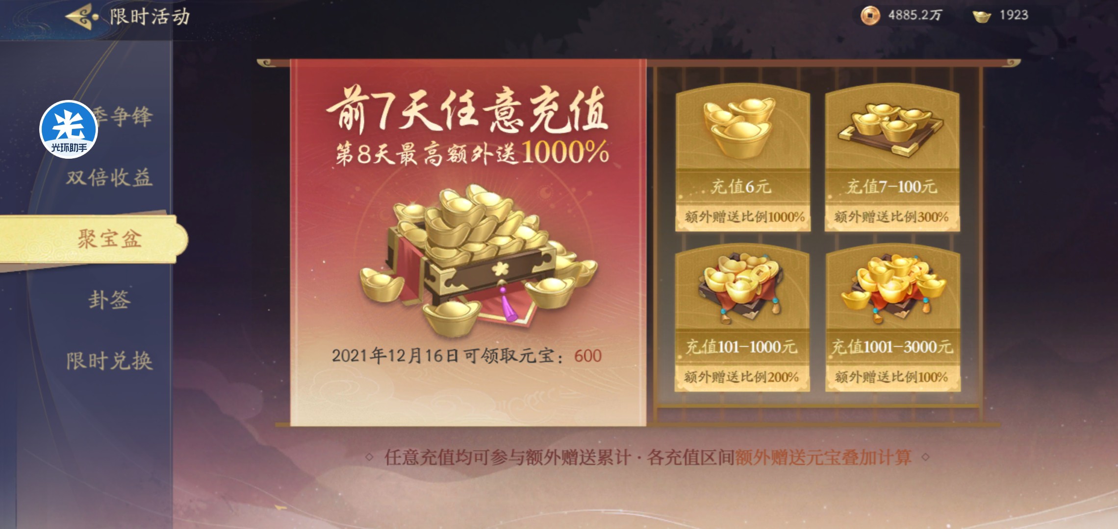 这次活动氪金力度较大有氪金返利,大家打算氪基金和战令的现在可以入手,如果元宝缺的不行成长基金一定是首位。