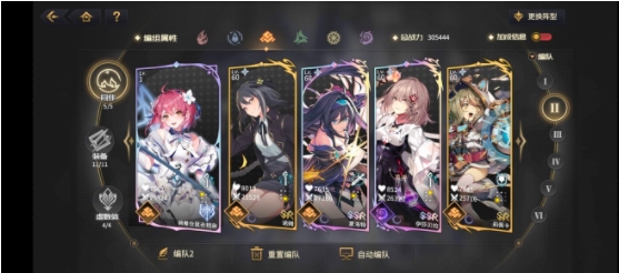 二队就打算玩暗了,想玩光,缺人物,水人物齐了不想玩,说一下爬塔吧,其实也没的说,土队就是稳定,挂自动我一般都去搞其他事,用这套,回响就是系统自动配的,
