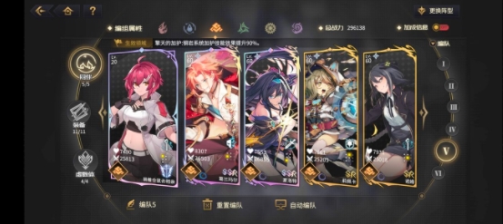 战力怎么高怎么来,我也没看,一路刷到38崩卡了败了,没变动第二次进过去了,然后到43层又卡了,然后我把废物ssr撤了,就是红头发那个,太丑我也忘了叫什么了,