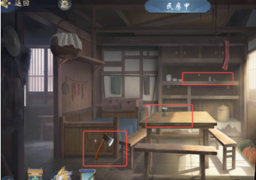 7、客房场景中拾取道具,获得标记粉、绳子、长剑,最后再点击黄色包裹,进行整理。如果之前就点击是无法整理的