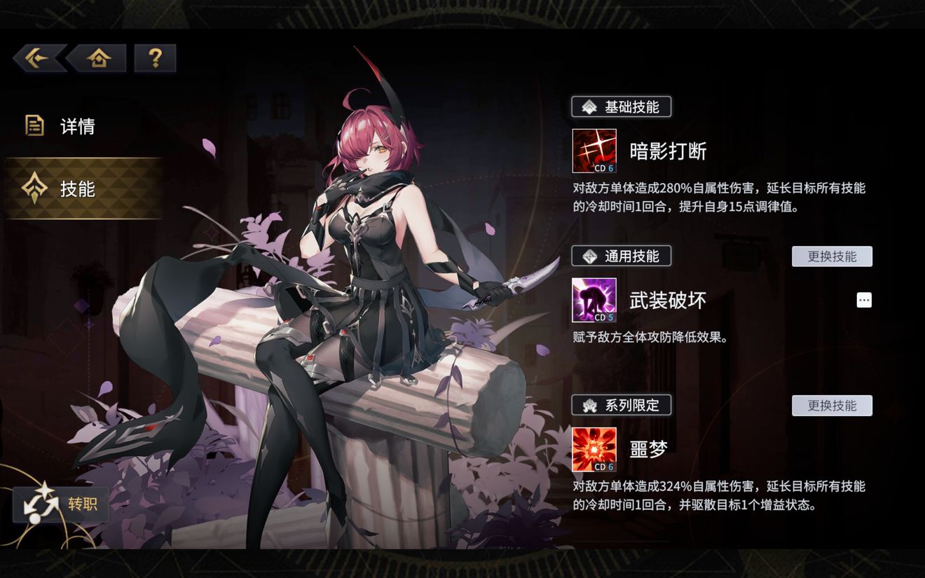 首先是主角的职业选择,我选刺客的理由是通用技能有20减伤,15级技能带驱散,被动带异常概率增加,调律带减cd,