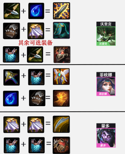 多余的肉装均可丢给蒙多,然后怼在敌方输出的脸上,推荐龙牙与反甲大幅度增加双抗防止被开场秒掉。