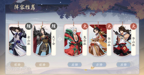 鬼谷派的群伤能力虽然不强,但是可以率先压低敌方血线,然后可以给华山派一个很好的切入空间,远近输出配合起来可是非常无敌的。而在防守方面,恒山派的群体减伤属性能让前排变得更硬,而且后排也能有很强的自保能力和输出效率,而金山派和天下会自然也能给C位创造非常好的输出环境。