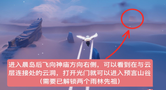 1、去晨岛右边的云洞地图,打开屏障门进入预言山谷。