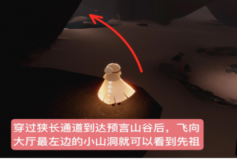 3、点燃水先知开始飞行追随足迹,在预言山谷转一圈即可拿到深呼吸动作。