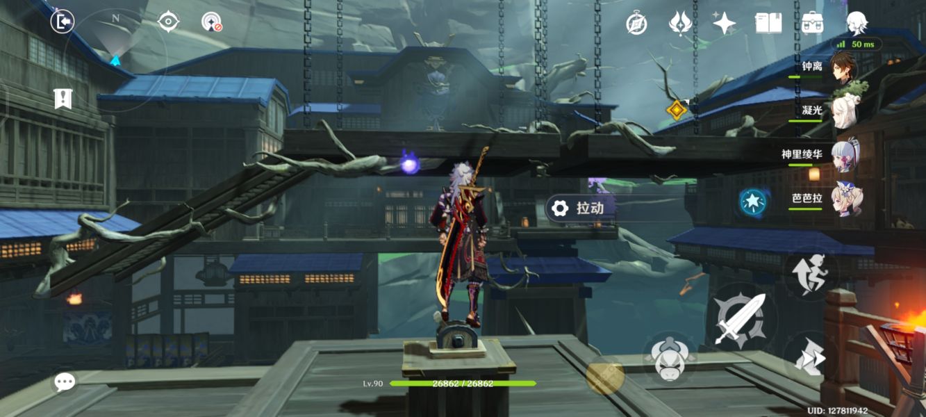 首先就是第一次到达楼梯处时派蒙会说那个楼梯在那边,那么远我们要怎么上去啊?(好像是这么说的,但意思一样)边上就有个机关。