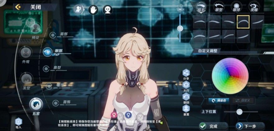 3、在时装界面中点击第三个选项即可修改捏脸相关的参数了,可以修改人物的五官、发型以及体型等参数,捏完脸之后点击右下角的保存,就会花费100墨晶,这个价格相当于10块钱,并不算贵,毕竟完成任务都会送不少。外观功能中,还能给各个时装染色,价格和重新捏脸一样都是100颗石头。(PS:当然也可以去大厅看其他玩家搭配的形象,然后导入ID即可。)