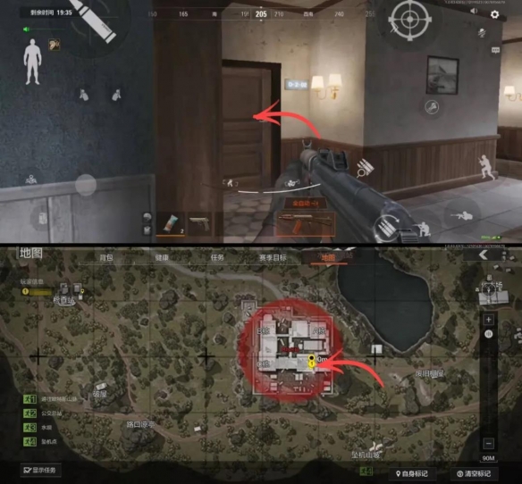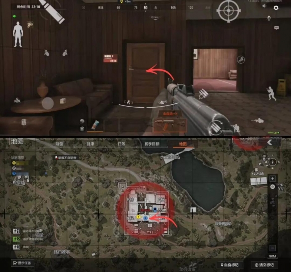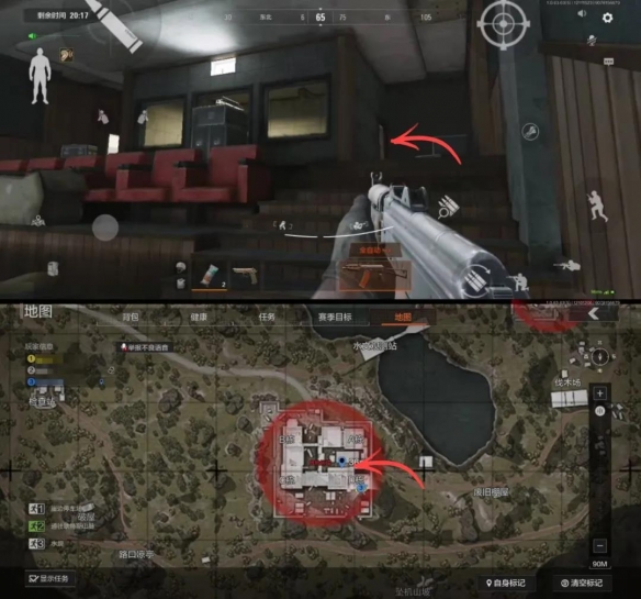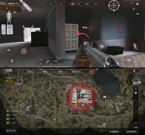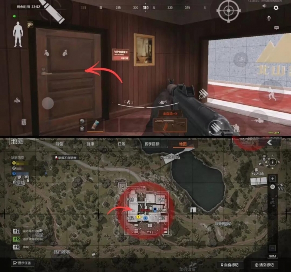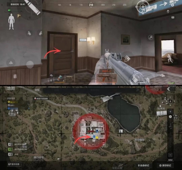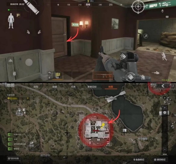 北山酒店共有四栋建筑,相互连通。左侧是B栋和C栋,右侧是A栋和D栋。相对来说B栋和C栋物资价值更高。如果从酒店北侧入口进入的话,不妨按照B-C-D-A的顺序来搜刮。而从南侧入口进入的先锋,则按照D-C-B-A的顺序更为合适。