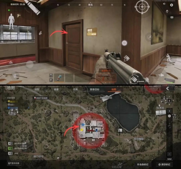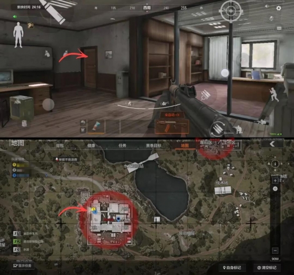 北山酒店B栋共有三个钥匙房间。一楼的经理室,二楼的接待室和203房间。进入B栋后,通过楼梯边的门可以进入一个大办公室,角落处就是需要钥匙打开的经理室,里面有一个保险箱、一个运动包,桌子上也有概率刷新一些枪械配件之类的东西。