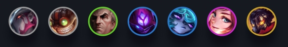 卡牌大师 崔斯特、爆破鬼才 吉格斯、诺克萨斯统领 斯维因、虚空先知 玛尔扎哈、愁云使者 薇古丝、光辉女郎 拉克丝、机械先驱 维克托