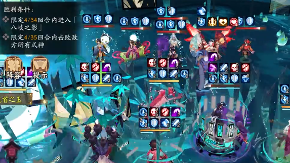 通关条件:限定0/34回合内进入「八岐之影」;限定0/35回合内击败敌方所有式神。